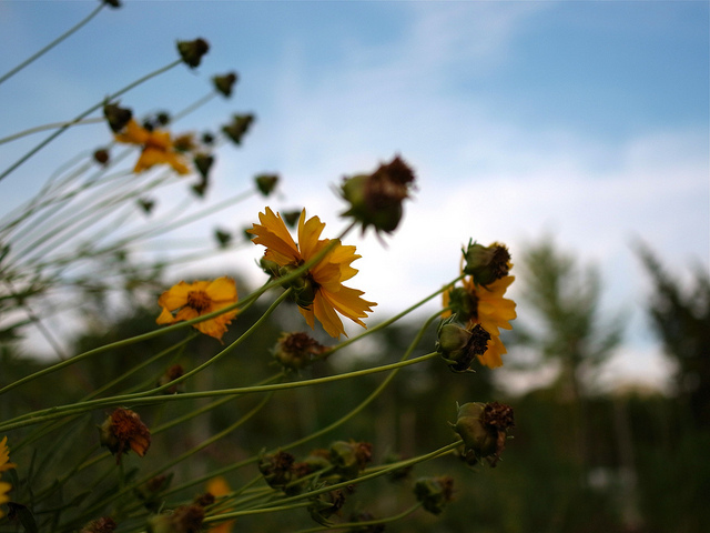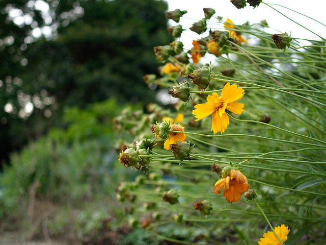 散歩道のオオキンケイギク。在来種を脅かす代表的外来種ですが、ぼくの自宅の近隣では、幸いあまり繁殖していません。