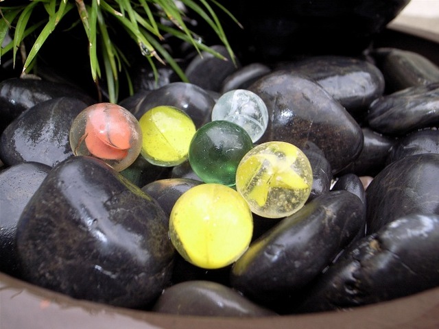 庭を掘りながら小さな発見もありました。私の家はもともと中古住宅で購入し、20年近く住んだあと建て替えて新築したものです。掘り返していると土のなかから、その20年間の家族の思い出が出土するのです。鉛筆、キンケシ、ビー玉、BB弾、フィギュアなどなど。いまはもうその多くを廃棄してしまいましたが、ビー玉だけは水鉢のなかでいまも家族の記憶を止めています。