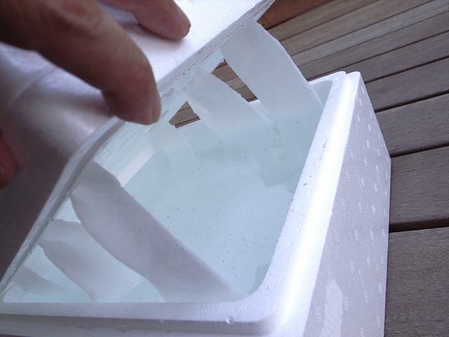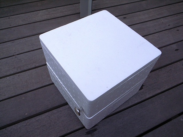 ところで、その俗にいうトロ箱ですが、ホームセンターにいくと様々なプロポーションのものが売られています。三角や四角というわけではありませんが、箱の縦横高さの関係が実にさまざまです。なかでも、真四角のものにインスピレーションを掻き立てられ、購入してみました。