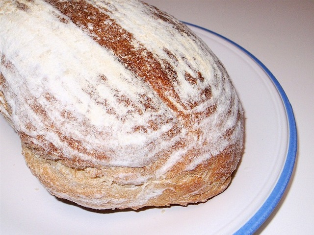左がカンパーニュです、いやあ、デカイ! 庭から掘り出した石です(笑)。味はまだわかりませんが、きっとウマイ、旨いに違いない。楽しみだ。でも、まだ昨日の残りのパンがあるんですねえ(^^)。