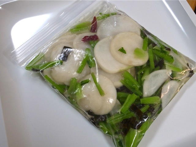 ですが、ただいまジップロックのなかで、甘酢風呂に入浴中。鷹の爪と昆布、酢と砂糖のお風呂って、どんなんでしょうね。ワタシでも溶けちゃいそう^^