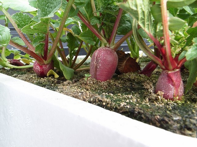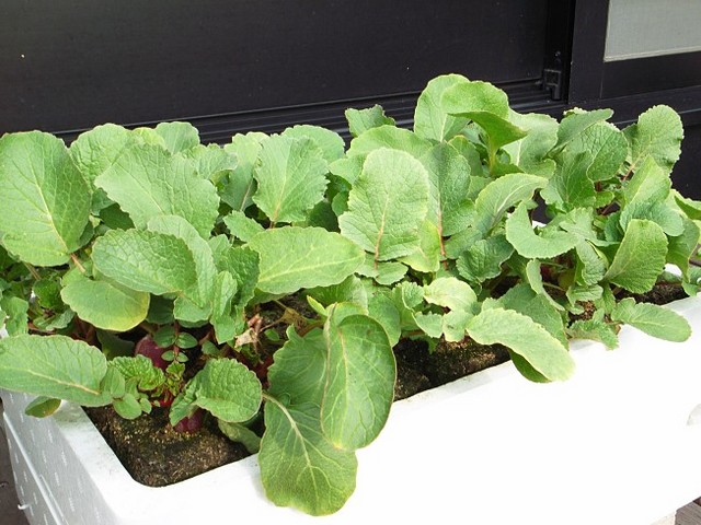 二十日のはずのダイコンが、なんと60日に迫ろうとしています。ホントにカブになるのかな〜と疑問のうちにも、徐々にではあるけれど茎が太り、なんとなく結球しつつあるようです。なんとなく・・・ですが(^^;)。この調子だと、正月の付け合わせはむずかしそう。