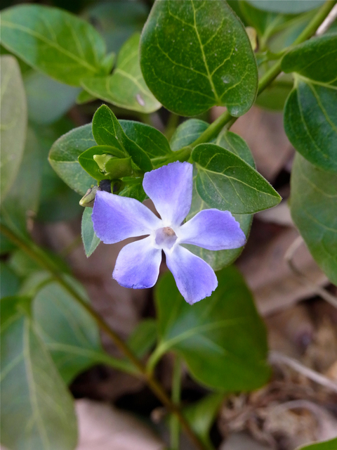 今年もまた、通称プロペラ草が花を咲かせました。正式名称のツルニチニチソウよりプロペラ草の方がピッタリくるのは、きっと職業病でしょうね(笑)。