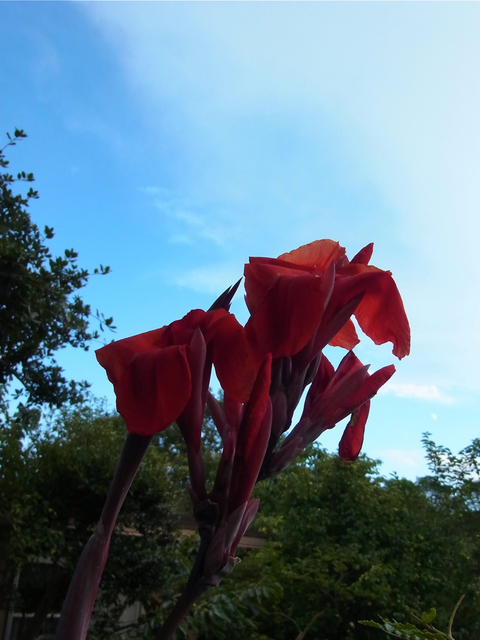 今年も元気一日にカンナが咲きました。すごく増えてきたのでかなり間引きましたが、よく育ちます。青葉も花もとっても大柄で、ウチの庭のなかではいちばん大柄かもしれません。多年草で、咲かせるのに手間はかかりませんが、間引くときは大量のゴミになります^^原産地は熱帯アメリカだそうで、いかにも熱帯植物という姿です。カンナの語源は葦だと聞くと、世界中にはいろんな葦があるんだなあと思います。写真左の花は7月11日、右の青葉は6月4日に撮影したものです。