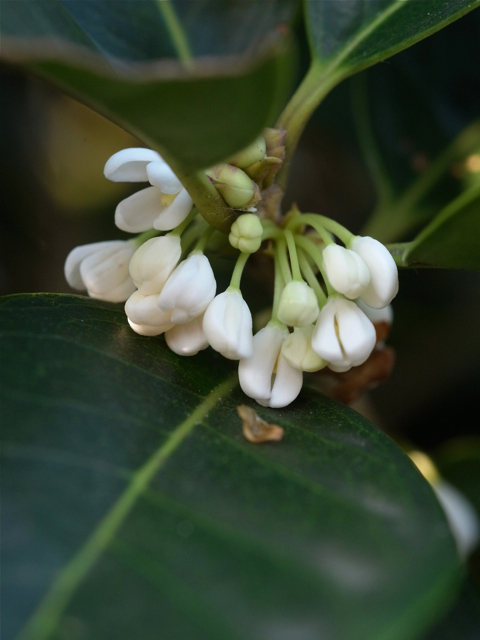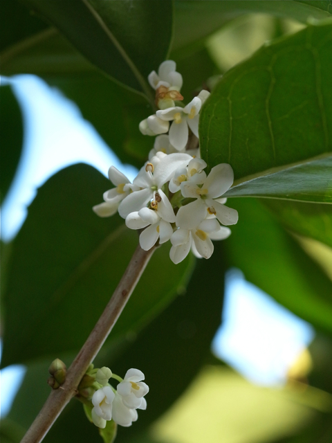 裏庭にある生け垣のヒイラギモクセイの花が満開になりました。金木犀より控えめで、おだやかな香りがします。