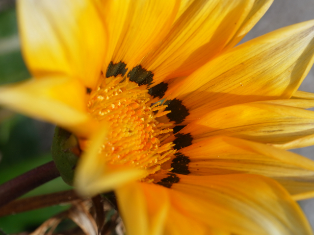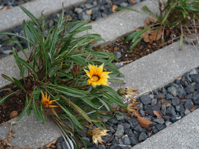我が家の定番ガザニアです。っていうか、妻のお気に入りの植物^^園芸店に行くとパンジーとガザニアがいっしょに並んでいるのをよく見かけますが、我が家ではガザニアの方がよく育ちます。パンジーのようにべダンゴムシの餌になることもなく、とても強くて持ちがいい植物です。