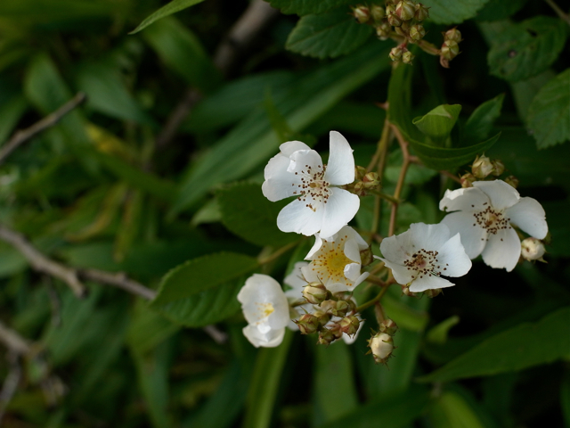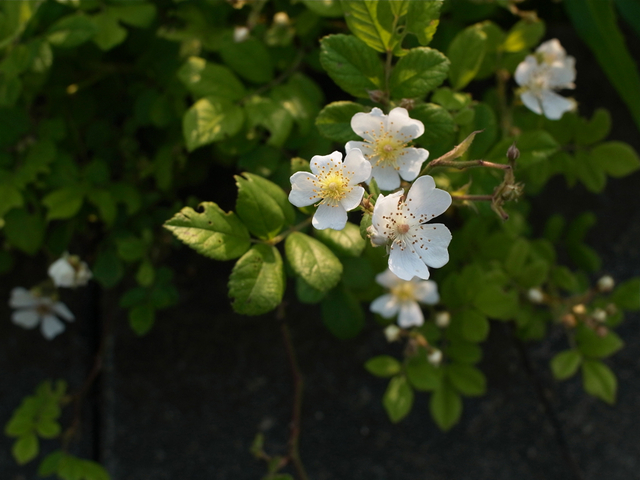 (撮影:5月13日)散歩道のノイバラです。「花を水洗いし、水気をとって、ホワイトリカーに漬け、冷暗所で三ヶ月ほど熟成させる」と花酒になるそうです(『山野草カラー百科』主婦の友社)。試したことはないけど。