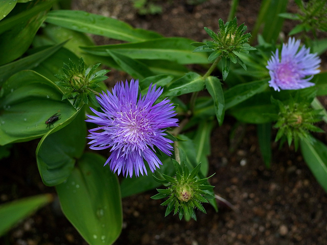 (撮影:6月3日)いつの間にか妻が植えていた庭の瑠璃菊(ストケシア)。寒さにも暑さにも強い多年草だそうです。GXRのMOUNT A12に、Micro-NIKKOR 55mmを付けて撮ったものですが、とてもシャープに写すことができました^^/