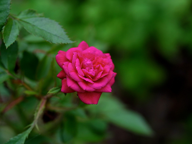 (撮影:6月10日)毎年咲いてくる庭のミニバラ。いつものことだけど、バラはうまく撮ることができません。カメラの特性なのか、どうしても赤が飽和してしまいます。なので、そうしても全体として絵が暗くなりがちです。