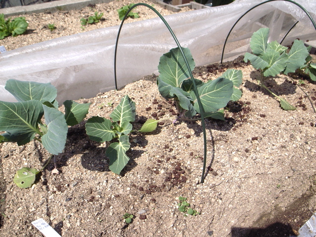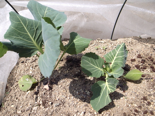 鳥に食われて瀕死の姿となったキャベツですが、ぐんぐん盛り返してきました。もしかしたら、後から植えた株に追いつくかも。そりゃあないか・・・。でも、そんな勢いです。プランターと同様、こちらも追肥がうまく効いているようです。それにしても、植物の生命力、すごいなあ。