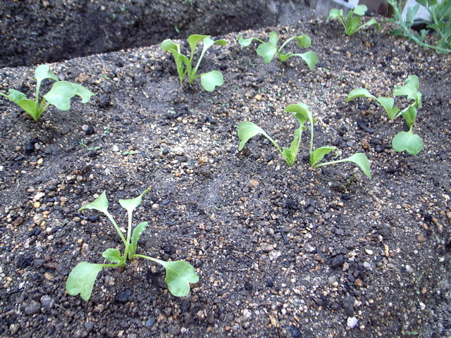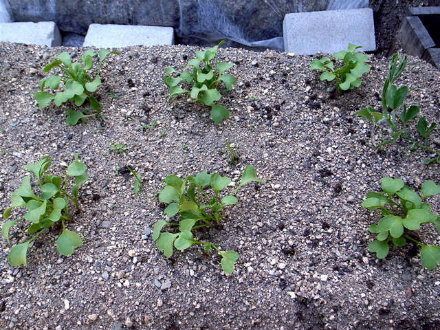 昨日の夕方、ミニダイコンの本葉がかなり茂ってきてので、間引きをしました。