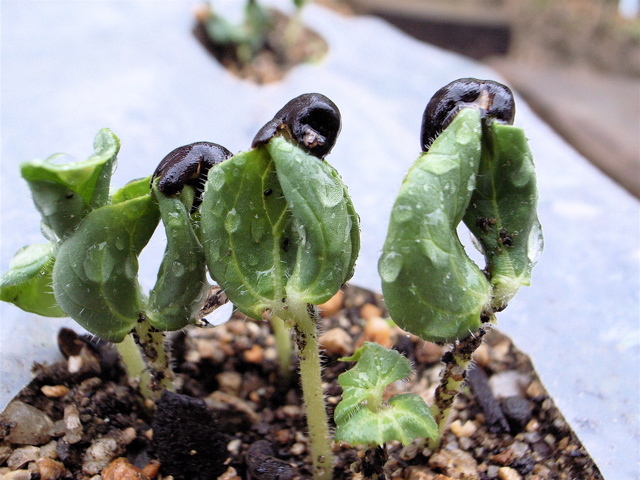 ちょっと蒔くのが早かったオクラですが、13日にしてなんとか生えそろいました。発芽温度の25度がキープできると5日くらいのようですから、やはりちょっと寒かったんでしょうね。オクラさん、ごめんなさい(._.)。