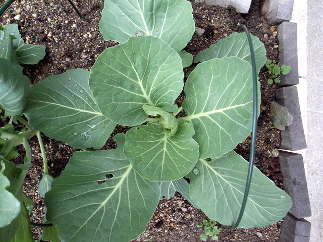 鳥に食われて筋だけになったキャベツが、すっかり葉をとりもどしました。こうして一斉写真に収まると、あの惨状がウソのように思えます。右端のキャベツは、なかでもいちばん被害が激しかったひとつですが、右端の写真のように目下、最も姿が美しい状態で返り咲きました。「災難は人を強くする」というのは生命一般にいえることみたい。もっとも、過ぎたる災難は人を滅ぼすともいいますから、程度問題なんですけどね(-_-)。