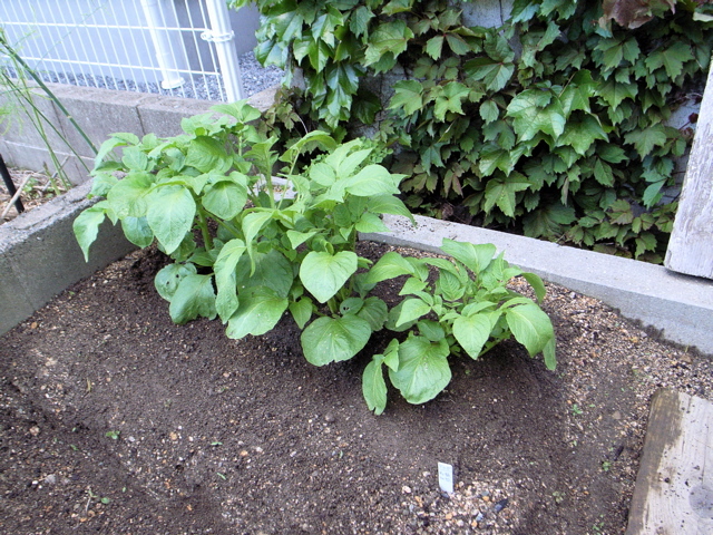 芽かきをしなかったらどうなるか。ジャガイモが大きくならず、小さなのがたくさんできるそうです。大きなジャガイモならマーケットにありますからね、小さなジャガイモをたくさん採って、丸ごと食べるのだ・・・と、居直ってみたり(笑)。