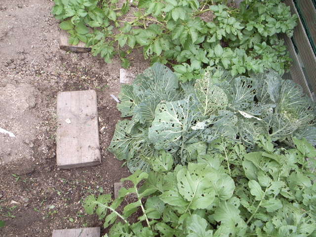 それにしても、確かに、青虫の被害は甚大です。「庭の虫退治」のコーナに書いたように一度はニームを散布したのですが、野菜が成長してからではあまり効かないようです。次回は最初から対策しないと。