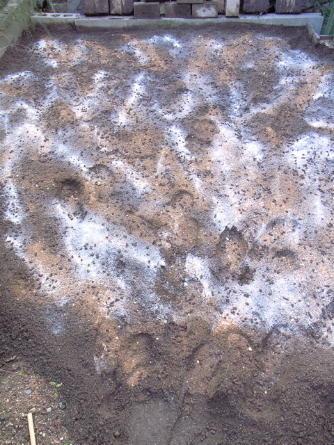 さて、そのリセットですが、小石や根なんかのゴミを取り除き、石灰をまいて酸性化した土を中和し、元肥を鋤き込む。肥料の割合とかはいろいろありますが、まあ、いろんな本のどれかに合わせればいいでしょうというズボラなリセット。