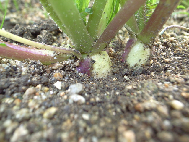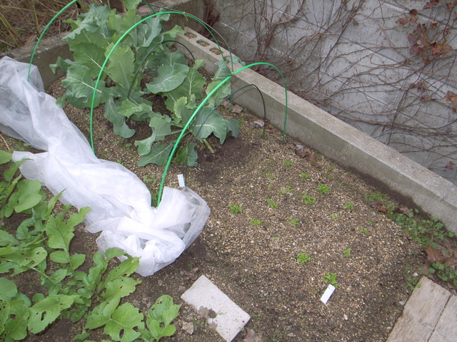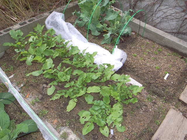 先週の追肥が効いたのか、葉が心なしか元気になったように見えます。ご近所ではもうダイコンの収穫を終えたところもあります。こちらはというと、まだ親指大ですね(^^;)。ま、そのうち大きくなるさ。ガンバレ大根!あ、キャベツも、カリフラワーも元気です。パセリはかなりゆっくりですが、着実に成長しているという感じ。食べられるまでになるのは、いつのことだろう・・・。