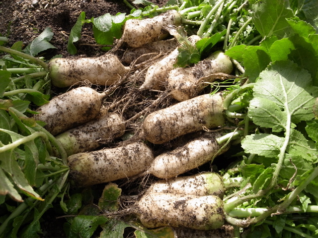 それから、写真奥の赤カブとミニダイコンの葉っぱですが、もちろんこれも活用します。冬野菜は虫食いがないので、葉っぱまでフル活用できるのがいいですね。