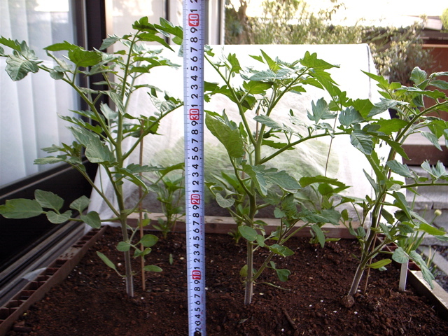 ミニトマトの成長が勢いを増してきました。花も付きはじめました。現在、丈は約40cmくらいです。このDIY-PLANTERの土の量、ミニトマト三株、ピーマン三株で全体の半分。単純計算では60リットルです。ミニトマトの育ち方によりますが、ちょっと少なめかなと思わなくはありません。でもまあ、どう育つかは野菜より土がベースでしょうね。土の能力以上に野菜は育たないだろうという意味で。となると、この条件でどう育つかを見るしかなさそうです。なんか、当たり前のことを書いているような・・・(笑)。