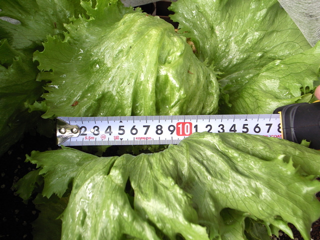 プランターのレタスもぐんぐん育ち、先ほど大きさを測ってみると、およそ13センチくらいになっていました。そっと触ってみると巻きも強く、よく締まっているようです。