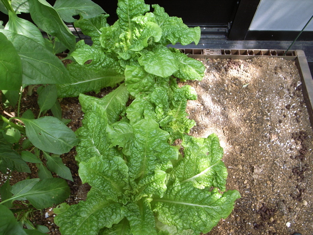 一方で、DIY-PLANTERには更地が(笑)。こうなってみると、どこか寂しいですね。チマサンチュは、下葉からずっと収穫が続いています。レタスと比べると、ずいぶんと収穫期間が長いですね。