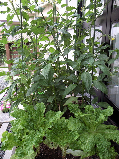 でも、ここにきて、やや葉の勢いがなくなってきた感じがします。今週中には食べてしまった方がよさそうです。収穫してすぐに食卓に乗る葉もの野菜を相手にしていると、たしかに「庭は我が家の冷蔵庫」というのか、生きた食料庫のような気分になります。