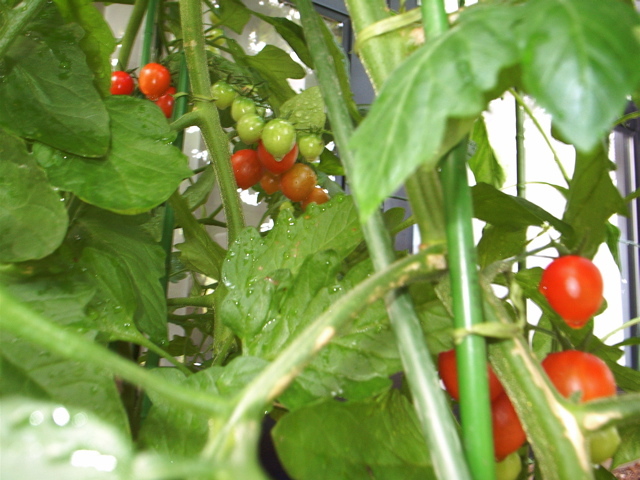 この数日で、ミニトマトいっせいに色づきはじめました。