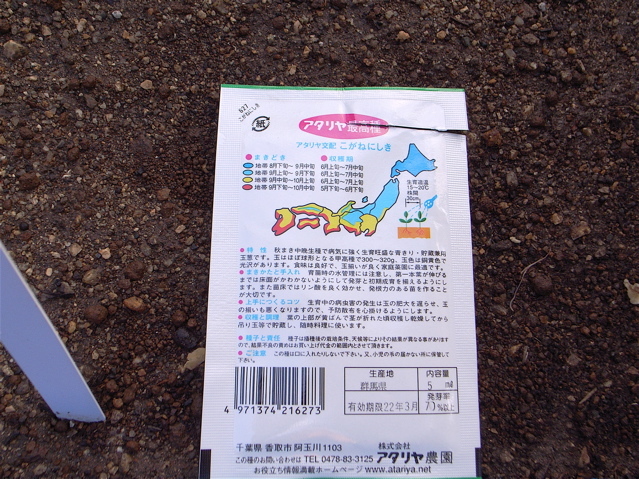タマネギの種蒔きの適期は一般的には9月末くらいまでで、いま蒔くのは遅いようです。もうちょっと待って苗を買うという方法もありますが、すでに種を買ってしまい、もったいないという気持ち。