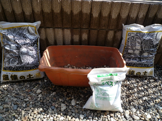 念のために大きめの鉢底石を敷きました。