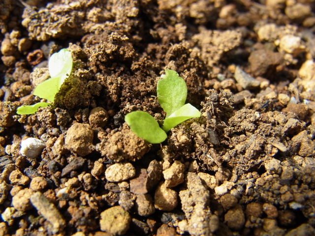 スイスチャードが被害を受けず、チマサンチュが発芽していないのはなぜか? おそらく、種子の大きさのちがいでしょうかねえ。スイスチャードの種は小豆大くらいありますが、チマサンチュは床の上のゴミくらい^^;ですから。