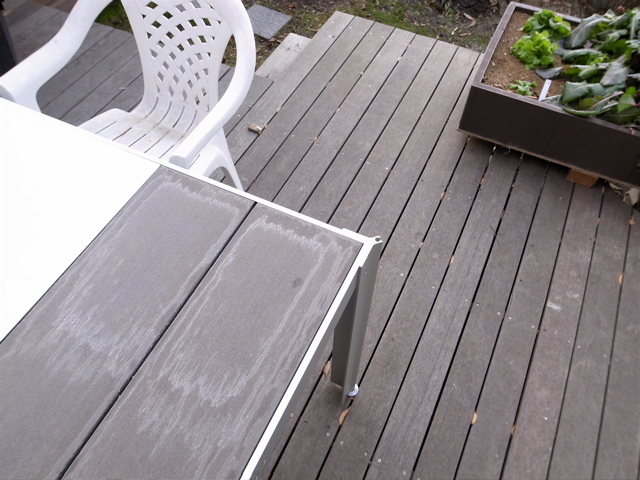 この冬は正体不明だった夏から一変、「フユ! まさに冬だ!!」という、季節感いぱいの寒さが続きます(^^;)。ここ「晴れの国おかやま」もすっかり凍てついています。そんな冬まっさかりの朝、我が家のクッキンガーデンも霜にまみれて薄化粧。日差しが登る前、テーブルの上にできた霜の結晶を写真に納めてみました。氷の世界から灼熱の夏まで、10年の歳月に耐えるようにと作り上げたクッキンガーデン、間もなく二年目の冬を終わります。あと8年、頑張っておくれm(^^)m。