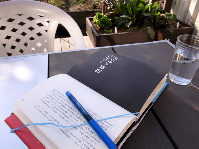 日差しがとっても暖かかったので、久々に、本を抱えてクッキンガーデンのテーブルに着きました。といいつつ実態は、休日恒例の全館開けっ広げての掃除で、部屋にいても外と変わらないからです。それに、邪魔者扱いされますからね〜(笑)。ところが、出てみると思いのほかポカポカと日差しが暖かく、本を読みながら2時間を過ごしました。座る位置を交互に変えて、北向きと南向きを繰り返すと、全体がこんがりと焼けます・・・じゃないや(^^)、身体が温まります。明日から2月。さあ、クッキンガーデンの出番だ〜!