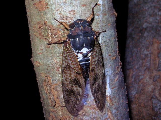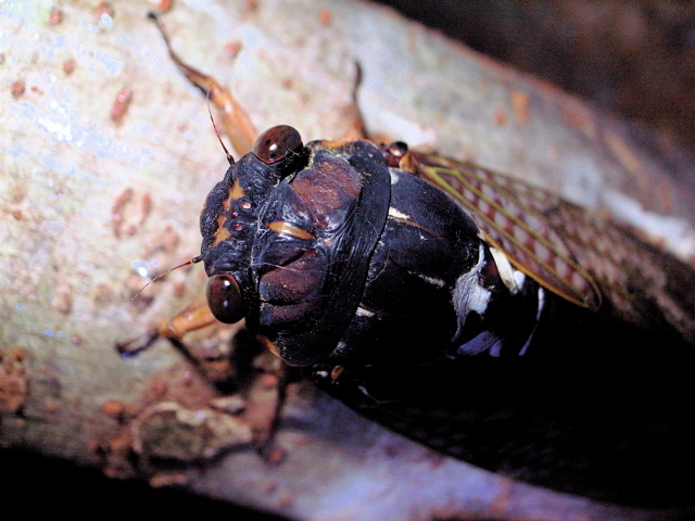 あー、岡山でもやっと、梅雨明けした「と思われる」宣言がでました(^^)/。その今夜、庭に出て、ケヤキに群がるアブラゼミを記念撮影。あ、梅雨明け記念です(笑)。「お前、なんて顔だ!」映画「プレデター」の台詞を思い出すその面構え。でも、強面のアブラゼミ、とつぜんのフラッシュに目がくらんだか、脳シントウを起こしたか、硬直したまま写真に収まってくれました。トンボと違って、こっちは羽根の膜は透明ではありませんね。ビニール傘とテント布くらいの違いかしらん???何はともあれ、さあ、夏だ!!