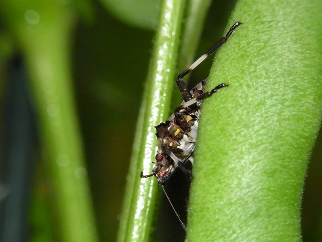 先日、キュウリの葉の上でクサギカメムシを見つけましたが、今日はおなじプランターの中のインゲンの実にしがみついたクサギカメムシを見つけました。カメラを向けるとじりじりと動いてインゲンのサヤに身を隠します。なので、葉っぱでレンズを隠しながら、こっそりと裏に回りながら撮りました^^/
