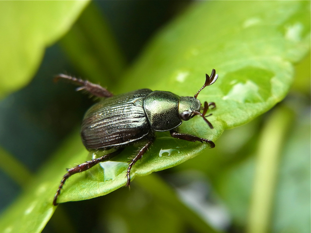 たぶん、アオウスチャコガネの雌かな。メダカのいる庭の水草の上で見つけました。アンテナがかわいい。それにしても、毎日毎日、いろんな虫やら草花が見つかるものです。古い団地の一角なんですけどね。なんと、庭のミラクルなこと^^!