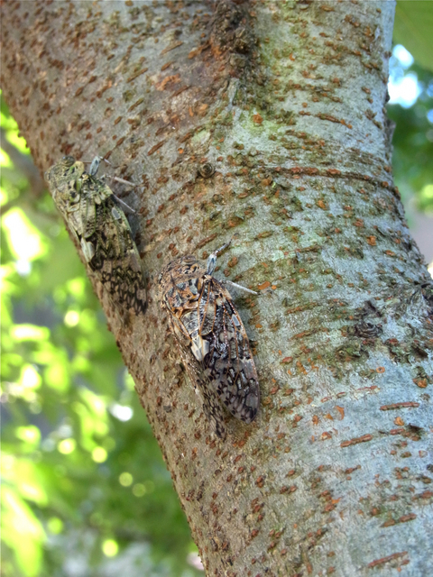 左上は、7月15日に今年最初に撮影したニイニイゼミです。鳴き声は撮影よりも一週間くらい前から聴こえていたように記憶しています。他の写真はいずれも7月17日に撮影したものです。種類はすべてニイニイゼミ。まだアブラゼミは姿を見せません。