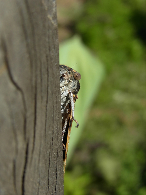右下は、カメラの存在にずりずりと後ずさり身を隠したミイニイゼミです。なんだかこう、子供のかくれんぼみたいです。