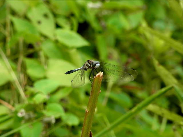 今年何度目かにこのコーナに登場するシオカラトンボです。散歩道で見付け、最初は広角で、しだいにズームしながら最後は300mmで撮りました。