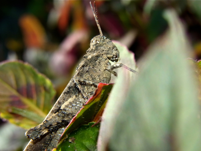 ヒメツルソバの茂みのなかに着地したイボバッタです。このサイズの世界って、それなりに面白いのかもしれないなあ。久しぶりに『ミクロの決死圏』を観てみたいと思いました。