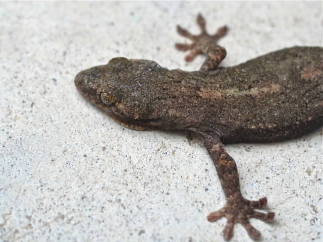 (撮影:11月5日)超多忙でご無沙汰になった庭の虫たちの記録です。このヤモリ、いつもは屋内にいるのですが、この日は駐車スペースの土間コンクリートの上にいました。すっかり秋になり、屋内では獲物が捕れず、彷徨い出たのでしょうか。