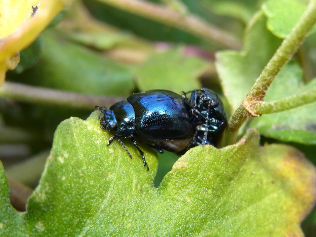 (撮影:11月6日)超多忙理由の過去ネタ復活シリーズ^^庭の小菊の林のなかで戯れていたハムシです。ハムシって、11月にも交尾するんですね。左上の写真なんか、ご懐妊中のようにも見えます。ハムシは冬野菜をよく食べます。