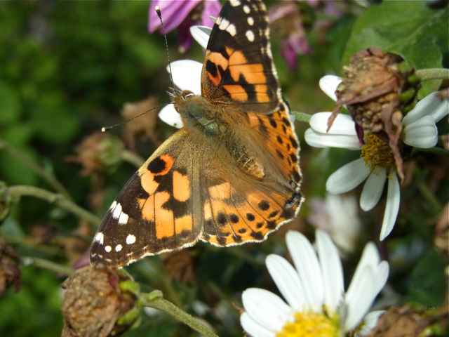 (撮影:11月6日)超多忙理由の過去ネタ復活シリーズ^^ 大晦日にすることか! と思うけど(笑)最初、ツマグロヒョウモンかと思いましたが、ヒメアカタテハですね。ツマグロヒョウモンの方は、後翅後端部に黒い模様があります。