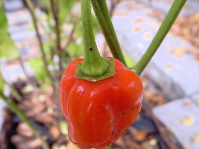 直前といいつつ一週間が経過。おかげで収穫ターゲットの実が四つとも赤く熟しました。たまには、イイカゲンとズボラの相乗効果もあるみたい。季節遅れでもなんとか育った四粒の真っ赤な果実。ハサミでパチンと切るのは忍びないと思いつつ、美味しくなることへの新たな欲望が(笑)。明日はハバネロソースに昇華しておくれ。★この後のハバネロソースの手作りについては「庭のレシピ」のコーナをご参照下さい。