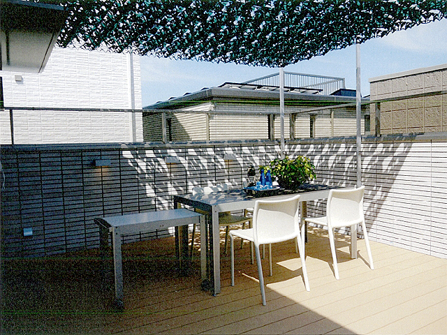 2010年9月18日にオープンしたばかりの総合展示場です。3Fのルーフバルコニーに、クッキンガーデンのテーブル(T1608)とワゴン(W8080C)が設置されています。