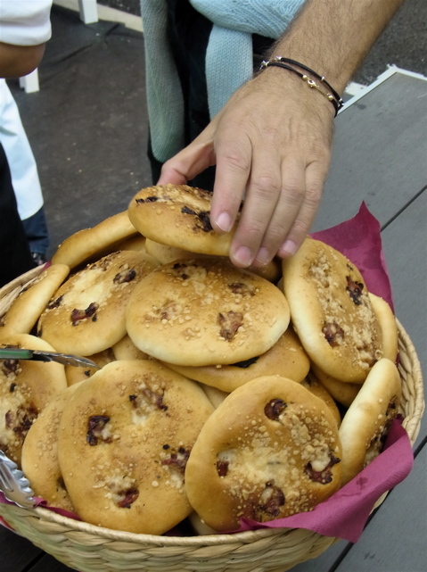 写真右下のフォカッチャの写真は、ジローさんのつまみ食いを捉えたショットです。