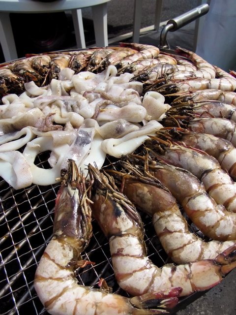 グリルに整列した頭付エビは、ゆうに体長20センチはあろうかという大物。そして、帆立にイカ。実に豪快なシーフードグリルでした。