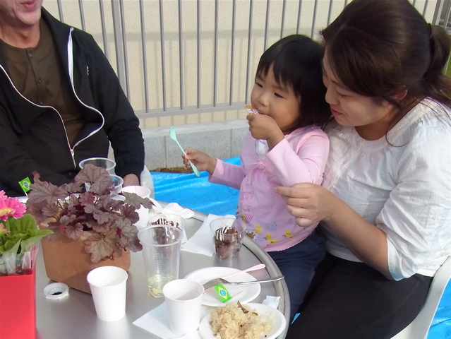 今回のイベントは、日常的な身近な庭が、家族の団らんに役立つことを実際に体験していただくことでした。そこには当然のことながら、子どももお年寄りもいてほしい。もちろん、素敵なミセスも^^;