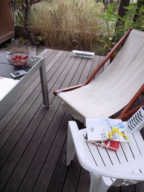 我が家の庭は、朝は9時前まで、夕方は5時を過ぎると、デッキの上に直射日光が当たらなくなります。そのおかげで休日のこの時間帯、ゆっくりとデッキで自然の光と風を楽しむことができます。