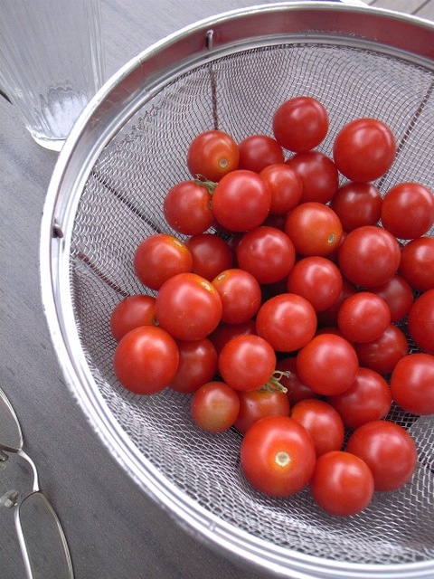 くつろぐときのおつまみは、もはや定番となったミニトマト。こうして写真に写すと、子供のころ庭で採ったユスラの実を思い出します。