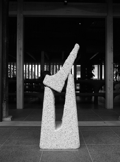 お店の庭はさほど広くはないのですが、大きな石が横たわっています。それは、岡山の一宮で掘りおこされた万成石。